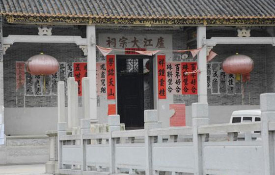 位于村内庐江大宗祠前,那座矗立的旗杆夹和一座座石碑,旌表着曾经的功名,彰显前世繁华。在庐江大宗祠门前广场颇为显眼的旗杆夹,高约3米,其中底座约1.3米,四面刻有浮雕。上方有两块长石,并列而立。而周边也整齐矗立着几列石碑,碑上刻有文字,如“同治庚午科 中式第十名武举”、“光绪戊子科 中式第五十二名举人”等,以旌表功名。