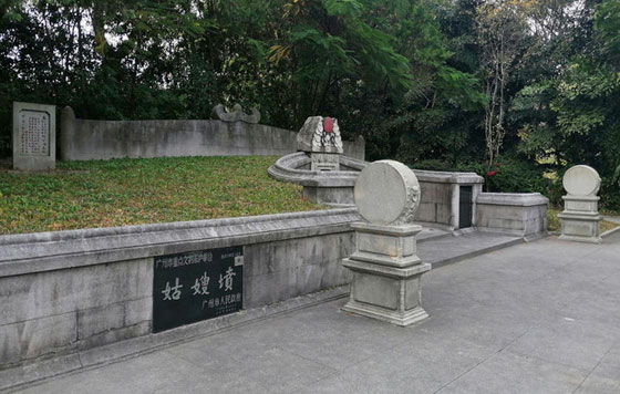 “姑嫂坟”是广州市北郊白云山麓的一处珠江三角洲的大族——番禺沙湾何氏的祖坟。“姑嫂坟”的墓主人是沙湾何族四世祖何人鉴的妻子与妹妹,而有趣的是,在同一墓地内,还有何氏三世祖何琛、四世祖叔何人铎(一说是何人鉴的胞兄,一说是何人鉴的堂兄)和九世祖的墓。