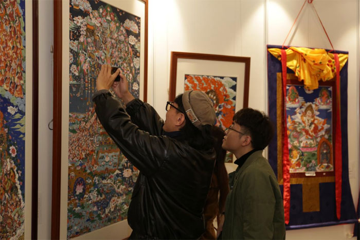在非遗展区,唐卡、年画、竹编、蜀绣等非遗技艺吸引了不少观众驻足。其中,竹编技艺“何氏宫廷扇”因其工艺复杂精美显得尤为特别。