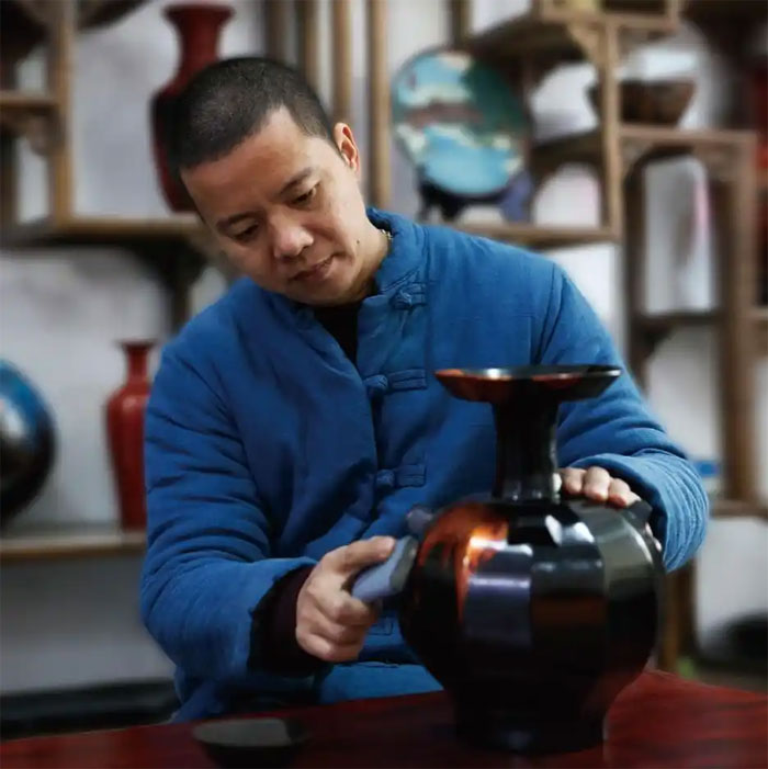 一路走来,何必阔早已从最初的“学门手艺养家糊口”的懵懂少年蜕变成肩负传承重担的漆艺大师,2008年何必阔,用几个月的时间整理材料,为夹纻漆器中申报非遗不遗余力。2009年,夹纻漆器申遗成功入选第三批浙江省非物质文化遗产保护项目,何必阔也被评为“夹纻漆器”项目代表性传承人,成为当时全国最年轻的省级非遗代表性传承人。