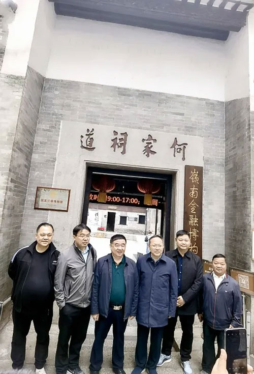 2月23日上午,许华为书记一行10人在何道深主任和广州庐江书院文化促进会会长何国华的陪同下,参观了广州市文保单位庐江书院。庐江书院作为广州地区重要的历史文化遗迹,承载着深厚的文化底蕴和历史记忆。考察团一行在参观过程中深入了解了书院的历史沿革和文化价值,感受到了庐江文化在异地的传承与发展。何国华会长设宴盛情款待了考察团一行,双方就进一步加强文化交流与合作进行了深入探讨,为庐江县与粤港澳地区在文化领域的合作奠定了良好基础。