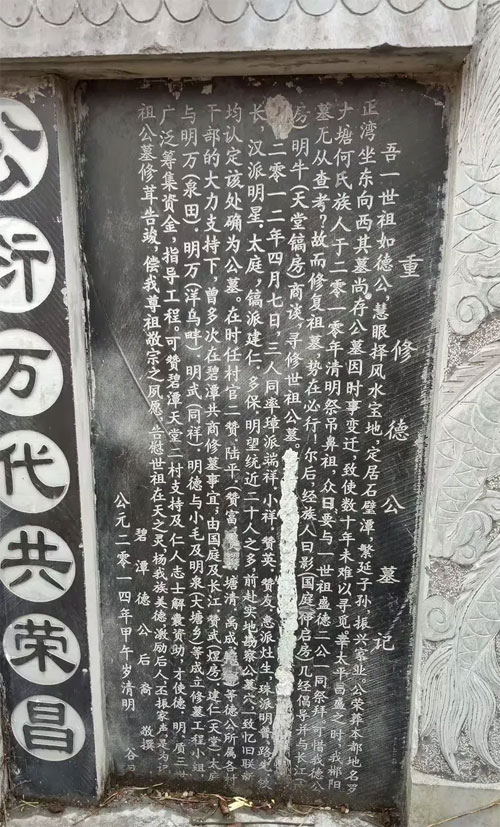 时年于2015年1月31日,曰影族长亲赴攸州明月岭,查找季二十三郎。惜!明月岭原何氏人盛矣,元末,陈友谅部由西进东经攸州烧杀抢虏,明月岭何姓族人已或被杀,有或逃走他乡,杳无音讯。喜!季三十二郎,即浚明公,举进士,由朝散大夫,知郴军州事,后裔定居大塘坊(今村头、碧潭)等地,繁衍数万丁之众。