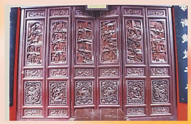 进入宗祠,首先映入眼帘的是第一进中的戏台。戏台前的一副对联道出了戏曲的内涵:“演悲欢离合,当代岂无前代事;观抑扬褒贬,座中常有剧中人。”戏台两旁的楼壁上,则分别绘制了孝、悌、忠、信、礼、义、廉、耻的画幅。