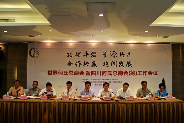 6月25日,世界何氏总商会(世界庐江何氏工商联合会)暨四川何氏总商会(筹)工作会议,在四川成都友豪锦江酒店举行。世界何氏总会总会长何道深,常务副总会长何美昌、何新炎、何朝友、何宁,监事长何启宾,副总会长何德宝、何经鹏、何令祚、何昱锋、何惠民、何文龙、何胜江,名誉会长何子明、何连;全国工商联副主席、四川科创控股集团董事局主席何俊明,四川科创控股集团副总裁何志明等出席会议。世界何氏总会与北京、广东、广西、湖南、湖北、重庆、安徽、浙江、福建、海南、贵州、内蒙古、辽宁、江西、江苏何氏总会、商会的会长、副会长以及部分企业家60多人参加了会议。