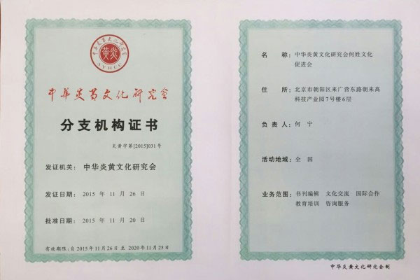 经“中华炎黄文化研究会”常务理事会研究同意,批准成立中华炎黄文化研究会分支机构——何姓文化促进会,全称为:中华炎黄文化研究会何姓文化促进会。