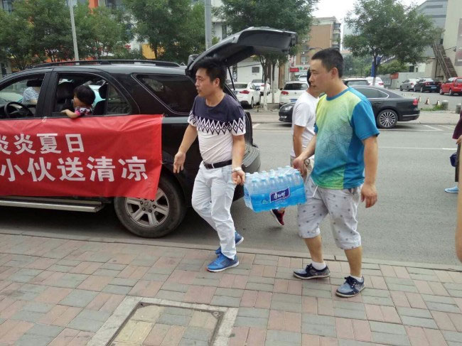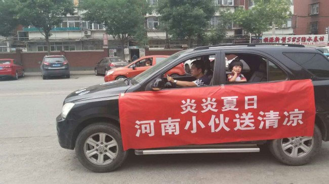 近日,在天津市经商的河南人何其中组织了一场“炎炎夏日,河南小伙送清凉”活动,给天津环卫工人送去了矿泉水、方便面、面包等等,得到了天津市民的一致好评,河南人就是好。