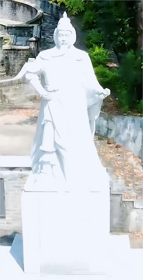 位于虎门鲤(鲫)鱼岗水库的贵七郎和夫人辛氏合葬墓旁的奋武将军贵七郎塑像。