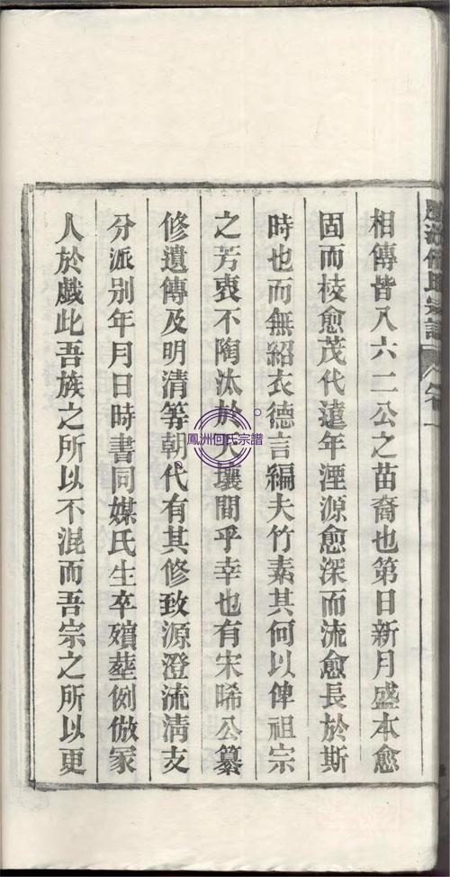 尝思人之有祖宗也,譬之于木,祖为根株,而子孙则枝干之分析焉;譬之于水,祖为崑仑,而子孙则石泉之细流焉。若不有谱以记之,则世系源流、长幼亲疏,何由而考察之?诚哉,谱牒之宜,亟讲也。