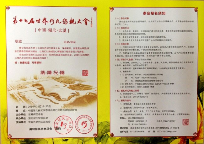 第十七届世界何氏宗亲恳亲大会《邀请函》