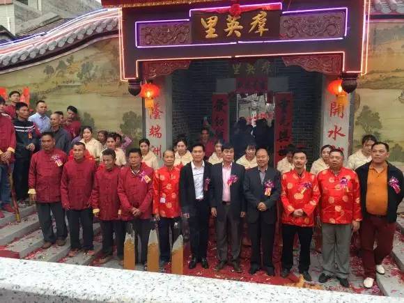 金渡三英村地处肇庆南部,座落西江河畔,风景优美,人杰地灵,家族人口兴旺,素质优良,祖先清朝年间,三代为官可谓人才辈出。可惜文革期间群英里门楼惨遭破坏,作为何氏大家族,不管走到哪里,家乡就是我们永远的牵挂。团结和谐、不忘祖恩,也是我们何族人的美德。从筹办到建造,何氏兄弟们劳心劳力、族人献计策、运筹谋、捐财资、无怨无悔,从中我们感悟到了何族人血脉相连、众志成城、合族团结的力量。感恩何氏的族人,有了你们的努力和付出,才能有了今天这一空前的盛况。