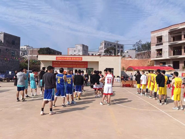 在新春佳节的喜庆氛围中,2024 年农历大年初三两广三县市何氏宗亲篮球赛在广东化州市兰山镇正式开赛。本次赛事由何氏上贵公宗亲理事会主办,兰山山背村承办,吸引了来自广东廉江板桥队、广东廉江山合村委队、广西陆川那阳队和广东化州兰山山背队等四支队伍参加。