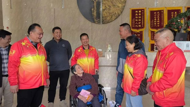关爱慰问行走进颐养园,慰问一位座轮椅的王锦平婆婆时,婆婆张开嘴很久才说出“你们来啦!以后多打电话来”,眼睛不停地看着慰问团的每一位亲人,嘴里喃喃自语“你们好靓仔呀!”,婆婆的言语、表情流露出长者的慈爱和亲情,宗亲会的慰问使她感激不尽,铭记于心,多次说出“吃了饭再走吧”,她是多么想挽留我们多一会呀!