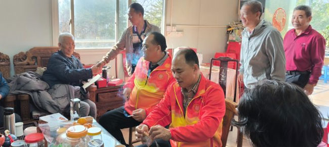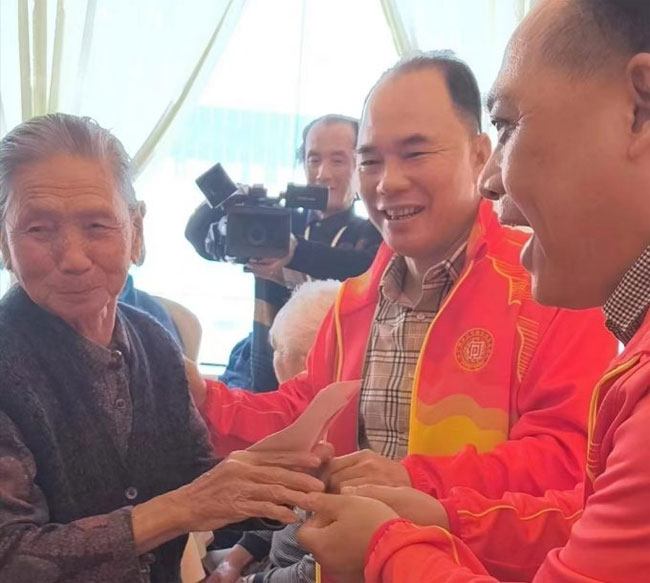 1月7日,总会长何国华再次带领班子成员20多人,举起关爱基金会旗帜,对广州市黄埔区沙涌村老、弱群体进行关爱慰问。