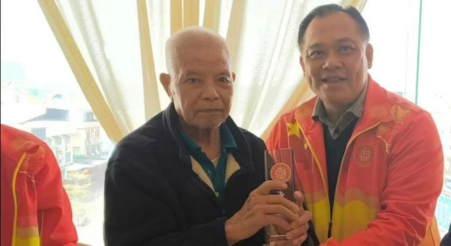 何国华总会长一行慰问何锐湛长老,为他送上慰问品、慰问金及颁发“僾然堂杰出贡献奖”奖杯。