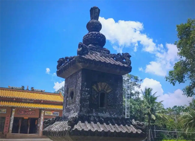 第三层之上,赫然可见“敬字亭”三个大字,其两旁精雕细琢的花瓶浮雕别致非凡。左右对联“中掩六经余味,上化五色烟云”深意盎然,透露出官屋何氏对高雅品质的不懈追求。塔身左右面,金钱方孔的设计别出心裁,而背面则精雕了一尊麒麟石雕,寓意着吉祥与富贵。瓦檐的翘角卷云状设计,更是将古朴与典雅完美地融合在一起。官屋敬字亭,这一历史遗迹,不仅承载着官屋何氏对文化的崇尚与教育的重视,更是儒家文化在儋州本土的独特发展与传承的重要见证。它深刻体现了儋州乡间对文字的敬畏与文化的尊崇。
