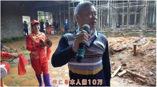 武平县新岗村何亶总祠喜封顶 庆典现场大家踊跃捐款