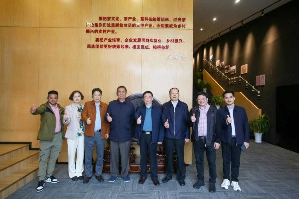 5月9日,何道深一行参观了长盛川青砖茶研发和生产线,看到这个企业从茶树种植到茶叶加工以至产品销售,形成了一条龙的产业链条,促进了产品升级、产业发展,深受启发和鼓舞。