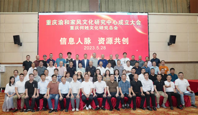 2023年5月28日,重庆渝和家风文化研究中心成立大会在重庆九龙坡区西部物贸中心举行,重庆何姓文化研究会和何氏宗亲近100人参加会议。重庆何姓文化研究会会长、重庆渝和家风文化研究中心主任何光灿,重庆渝和家风文化研究中心副主任何立峰出席会议。