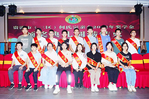 广西贵港何氏会馆理事会奖励了其中的24名大学新生