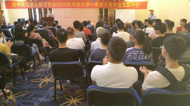 2020年8月29日,梧州荷花爱心助学奖励大会如期举行,疫情没有压垮他们,会长、市政协委员何全到会并致辞,原会长何旭明出席大会讲了话,原市老领导、原市政协副主席何深出席大会讲了话,原市教育局长何炎明参加大会作了励志讲话。