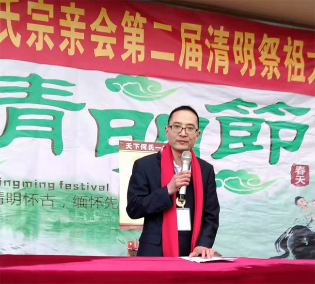 我是西蜀何氏宗谱主编何连荣,2017年有幸参加了潼南区何氏宗亲团体,今天又荣幸参加潼南区何氏宗亲第二届清明祭祖大会。在这里,我代表西蜀何氏宗族理事会,代表中华何氏传统文化丛书编委会向大会表示热烈祝贺:祝大会圆满成功。