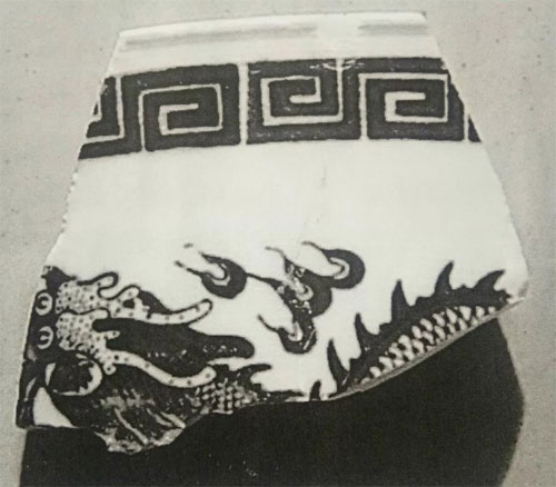 证据五:2017年春,笔者与马鞍山当地学者张良强先生结伴在濮塘苏坝方夫人的墓地探究时,从刚被人用挖机挖开的墓穴中央,找到一块青花瓷的残片,上面有一条龙形的图案,可惜仅有头、脊背的不完整部分。经市文物管理部门的专家进行鉴定,专家给以判断;从龙的造型眼睛表现手法来看很符合明末清初青花瓷的特点。濮塘荒郊野外的一座孤坟中,能有龙形青花瓷出现,表明出明朝福王时,妻方氏封夫人的地位也很不一般。