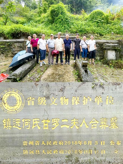 8月15日至16日,调研组转赴黔东南州镇远县,考察宋末元初武将、镇远何氏土司始祖何清世系。何清之妻甘、罗二氏在明初被追封为“恭烈夫人”、“顺烈夫人”,其合葬墓为省级文保单位。何氏家族由此开启世袭土司六百余年历史。调研组拜谒甘罗二夫人墓,并参观镇远何家大院、和平村俘虏收容所及周达文故居。