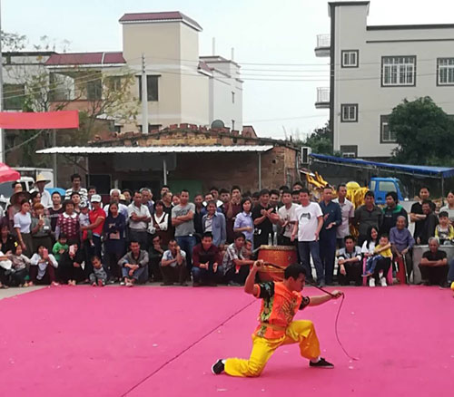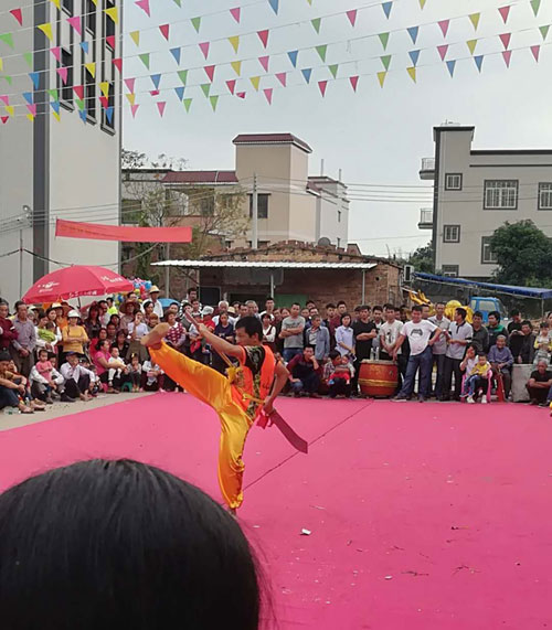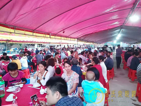 早上村集体鲜果糕糖敬神,中午舞龙舞狮,武术表演!傍晚附近十余村宗亲宾客,与本村宗亲两千余人欢聚一堂。男女老少笑乐融融,开席二百余席。晚上粤剧表演!