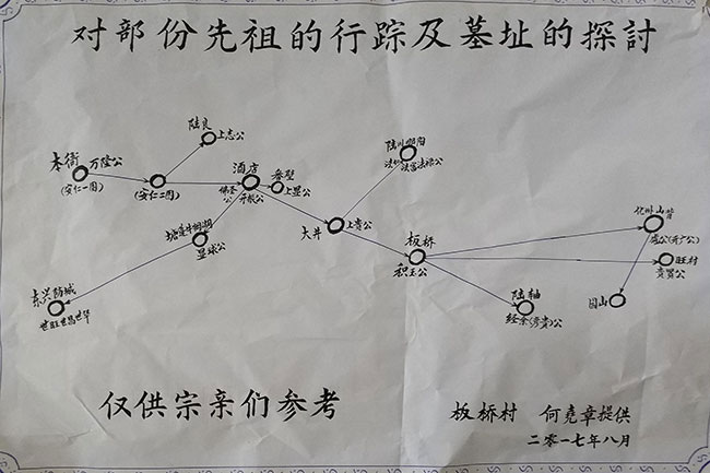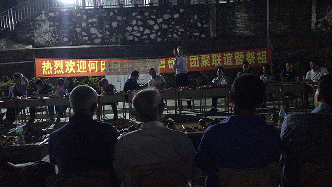 当天下午板桥村文化楼附近锣鼓喧天醒狮起舞,50多名宗亲一行受到当地何氏宗亲的热情接待。晚饭过后在板桥小学召开宗亲代表座谈会,此次座谈会的内容主要有三点:一是联络宗亲,加强了解;二是对部分先祖行踪以及墓址的探讨,三是商讨28日重阳祭祖相关事宜。