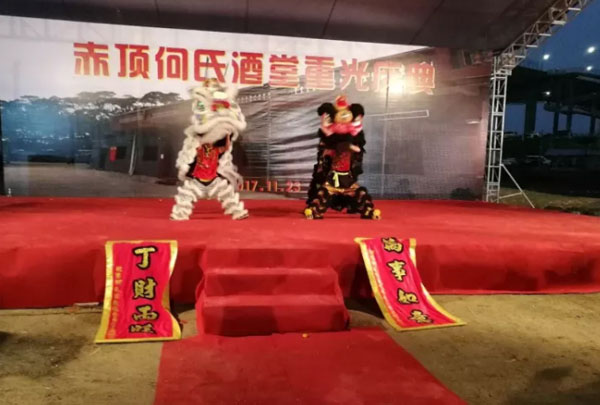 小雪时节刚过,迎着初冬的暖阳,11月24日,金渡赤顶村何氏酒堂重修入伙庆典隆重举行。赤顶村兄弟姐妹、贵甫公后裔代表、师兄弟村代表以及肇庆何氏宗亲总会理事班子代表出席庆典活动,市总会庐江堂醒狮队、宗亲狮队以及各师兄弟狮队同台助兴。