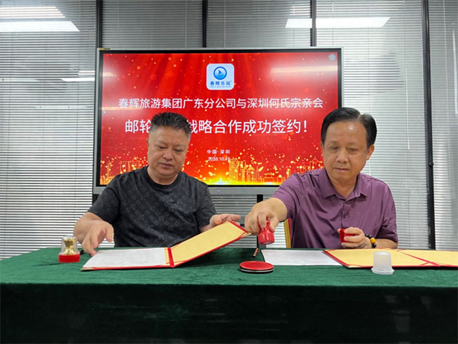 1、深圳何氏宗亲总会(深圳何氏文化传播有限公司)与春辉旅游集团现场签署战略合作协议;