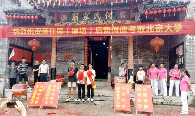 8月12日,汝城何氏奖学活动传来喜讯:今年共有150余名学子考取重点本科,其中何政、何晨分别被北京大学和清华大学录取,延续了该地何氏子弟自1990年以来屡入清北的优异传统。此外,衡阳县潮公脉系何氏衡房也为7名学子、平江何氏总祠也为15名考入985、211等重点高校的学子分别举行颁奖仪式。