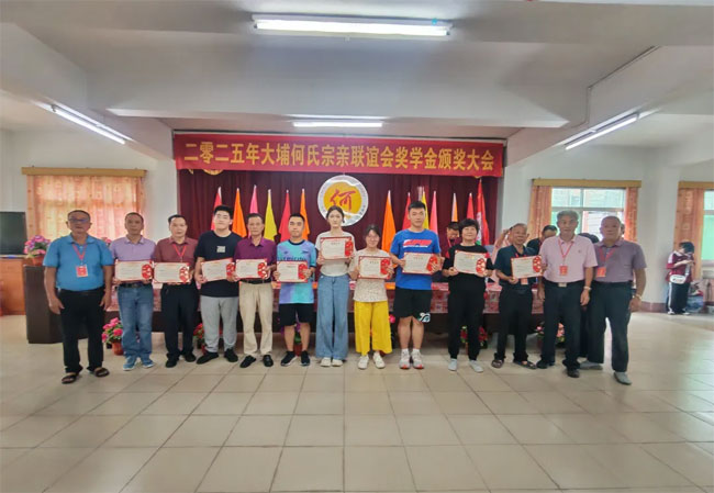2025年8月21日上午,大埔何氏宗亲联谊会隆重举行2025年奖学金颁奖大会。今年,共有52名优秀学子获得奖励,其中,我村何佳龙、何瑞钰、何永凡、何永其、何蕊、何子妍、何淑婷7名优秀学子名列其中,获得2025年大埔何氏宗亲联谊会奖学金。