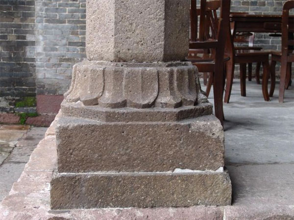 前廊步架木雕图案丰富,次间设鸭屎石包台,台基上雕有麒麟等瑞兽纹饰,刻工刚健有力。