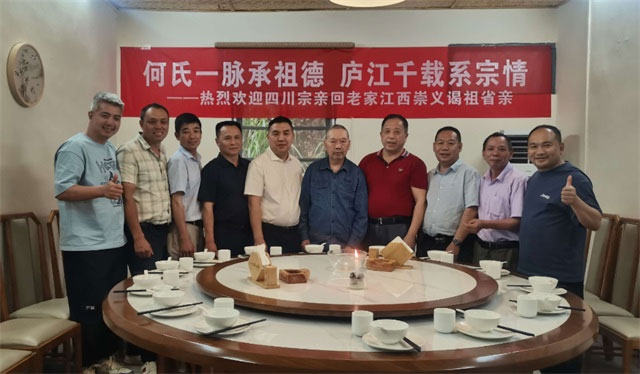 广东南雄大水边老木塘,来自四川、广东、江西三省的何氏宗亲齐聚一堂。世界何氏文史部长何石堃及编修人员、翁源县汉辉公后裔何瑞生、江西崇义县兴贵公后裔何小勇、南雄市文广公后裔何东明等宗亲,以及四川省成都市兴祟公后裔子孙何昌禄、何昌勇、何伟三人的到来,使得这次聚会意义非凡。