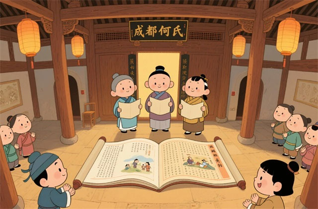 在成都的何氏宗祠内,一场盛大的仪式正在举行。族谱的新篇章在众人面前缓缓展开,每一页都记录着三位族人寻根之旅的点点滴滴。何昌金族长满怀感慨地宣布,族谱的续写不仅是对历史的尊重,更是对未来的承诺。他们将把这次旅行的所见所闻,以及对家族历史的新理解,传给每一位何氏子孙。