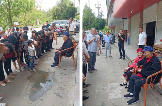 川东北平昌县何氏为双百老人举行祝寿仪式(图)