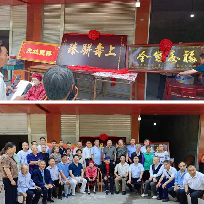伯头何氏宗亲献《上寿骈臻》贺匾,何全宗代表伯头宗亲讲话。