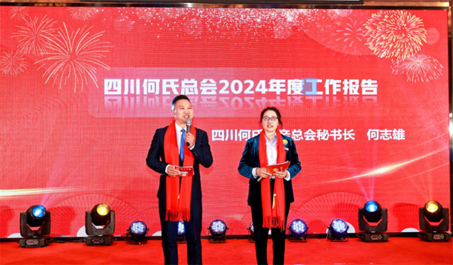 省总会秘书长何志雄宗长在会上做了主题为“聚首蜀地话何史、新春继志耀荣光”的四川何氏总会2024年度工作报告。
