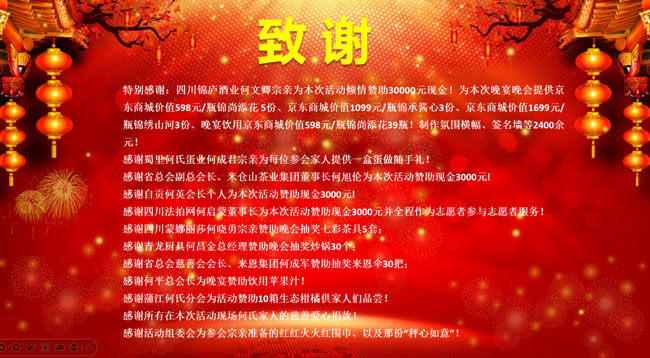 四川自古钟灵毓秀,孕育众多名门望族,何氏家族便是其中一支。我们扎根于此,历经风雨,创造了辉煌历史与灿烂文化。回顾往昔,何氏家族源远流长;立足当下,传承何氏家风意义非凡;展望未来,何氏家族前景光明。秉持何氏精神,稳中求进,深耕细作,集中龙头,善守初心,砥砺前行,在商业领域续写何氏家族的辉煌篇章!新的一年,以两个论坛为契机在行稳致远的道路上,实现HE家团圆的美好!