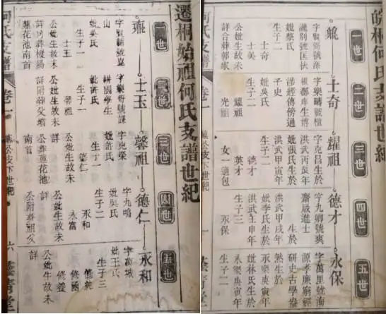 三、岐山芦塘支何氏始迁祖何元一、何万龄是婺源何令通的第14世孙,由此可知:何元一、何万龄在大同谱中世次为第56世。