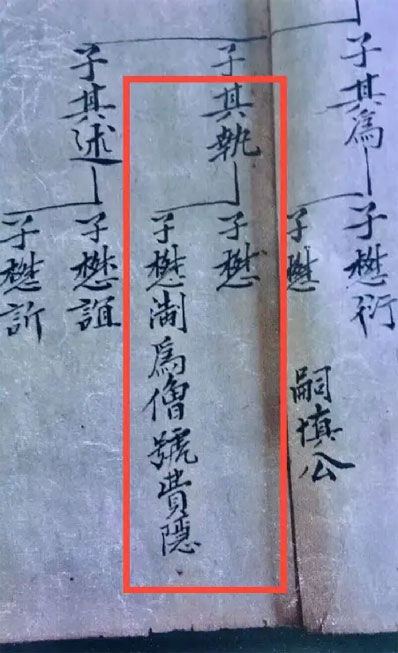 费隐的高祖名何基,他在江阴的子孙很多,只记载到第十三世。