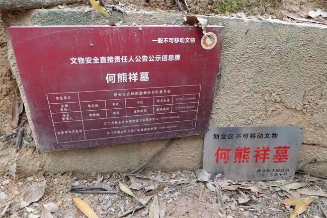 何熊祥(1567-1642),字乾宰,号玄谷,广东新会人,明朝万历年间进士,官至南京吏部尚书,因一身兼管六部(工、户、礼、兵、刑、吏),被时人誉为“一柱擎天”。他一生刚正不阿,曾多次为民请命,减免赋税、平反冤案,其清廉事迹至今仍被传颂。然而,这位历史名臣的安息之地却屡遭盗墓破坏,墓前石虎、石马等文物虽被新会博物馆征集保护,但墓地本体残损严重,仅存部分遗迹,现被列为“一级不可移动文物”。