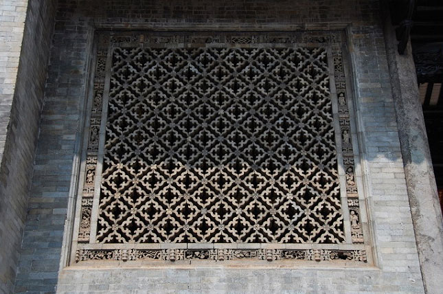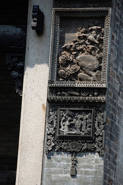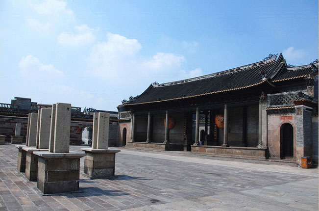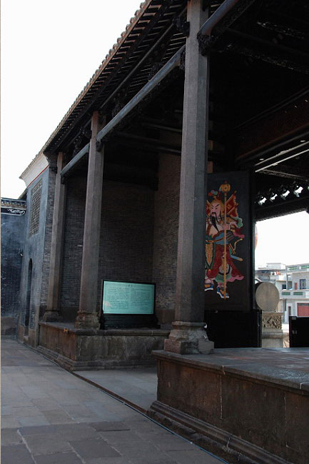 象贤堂后为第五进后寝,名“留耕堂”。此处除前廊四根红砂石覆莲柱础柱础可以确定为明代遗物外,其余部分新修的痕迹太过明显,看看时间已经所剩无余,也就懒得入内参观。事后得知,此堂内有番禺驰名的民间艺术——沙湾飘色的雕塑,既然错过,也就无所谓后悔不后悔了。