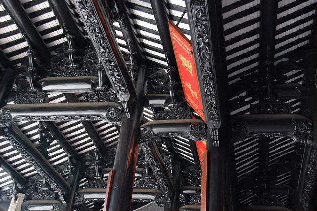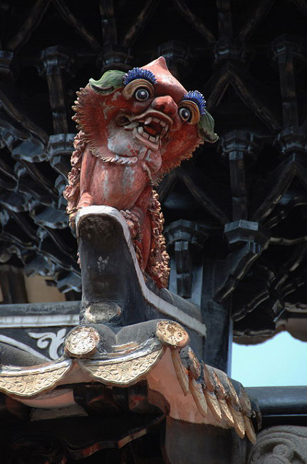 资料称,山门屋顶的铺作最值得细心欣赏。门顶横梁的木雕极其精美,特别梁上33个三重如意斗拱,雕刻内容花样百出,或奇花异卉、飞禽走兽,或历史故事人物,无不栩栩如生。只可惜,某人一时疏忽,并未抬头细看。
