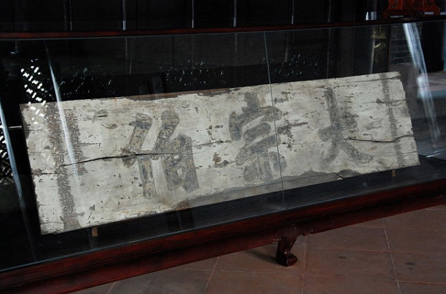 而在木屏两侧,各有一面旧牌匾。据说这两面牌匾之前为防洪被村民当作挡土板埋于村外的坝堤之下,1984年重修留耕堂时才被找回。