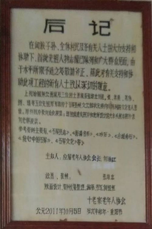 石屏何地何氏源于安徽省庐江县,故(十老寨)何地何氏宗祠(敬称)为“庐江祠”。