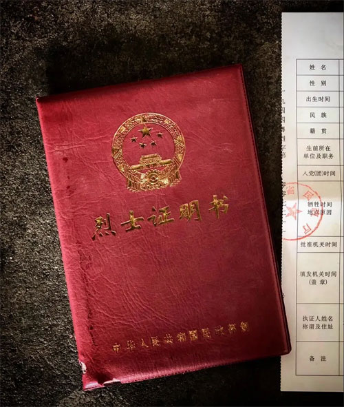 (中华人民共和国成立后,为抗日Zhan争时期牺牲的游击队家属颁发的烈士证书。)