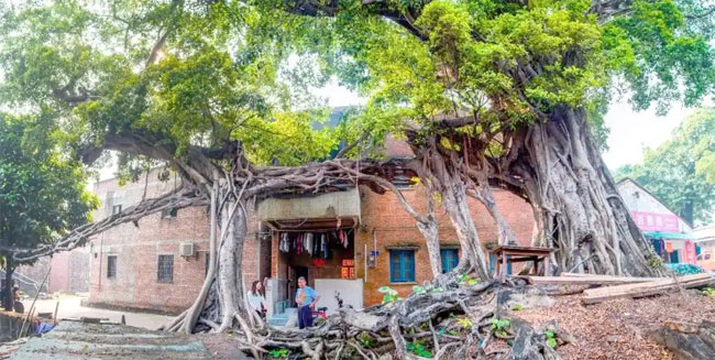 上九洞溪村的孝德公园内,两棵历经150年风霜的细叶榕巍然耸立。它们的枝干上,一块刻有“国家三级古树”的铭牌,见证着这两棵古树的非凡历史。洞溪村祠堂前,两棵龙眼树分列左右,它们默默地守护着宗族,为世代村民提供庇护,并结出丰硕的果实。这些古树不仅历史悠久,还 传承着宗族的文化和精神。