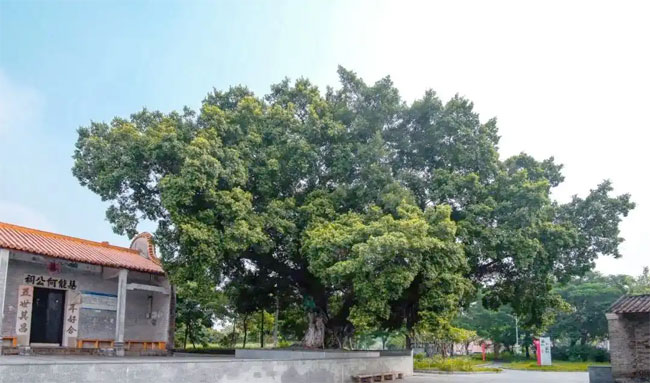 南何村的慧能何公祠前,同样屹立着一棵历史悠久的榕树,这棵树龄超过300年的古树,已被列为国家古树保护二级。尽管历经风雨,它却依旧保持着旺盛的生命力,枝繁叶茂,郁郁葱葱, 展现出顽强的生命力,成为当地的重要自然景观,似乎岁月并未在其身上留下痕迹。